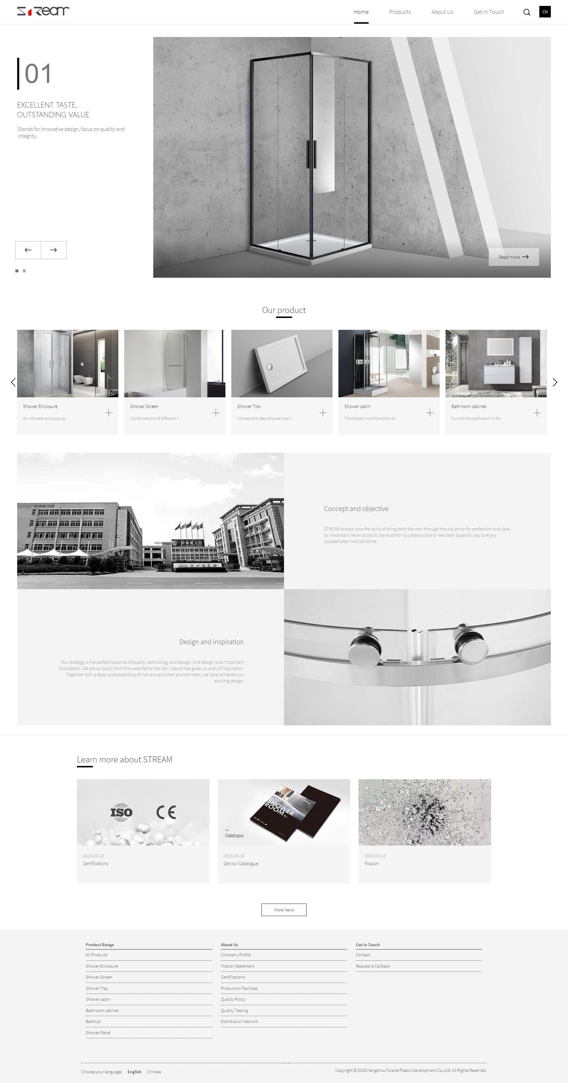 Located the bank of the scenic Qiantang River,Hangzhou Fulaite Plastic Development Co.,Ltd. was set up on 1997.It is a large-scale sanitary ware manufacturer combining R&D,production and sell as a whole.Our main products are high grade shower booth,massage bathtub and shower panel,etc.Our factory always attaches great importance to standard,R&D,brand,market and talent.We have passed ISO9001,ISO14001,GS,CE and ACS Certificate,etc,and built our technical center of HangzhouCity.And its sister company Hangzhou Bogao Furniture Co., Ltd,specializes in designing and producing an extensive array of bathroom cabinets、bathroom cupboards 、vanity units and mirror cabinets.The company is established to cater to the market trend of bathroom cabinet. It stands out for its absolute product and service quality. It is certificated with ISO9001, thus giving its customers a further guarantee of an excellent internal organization.