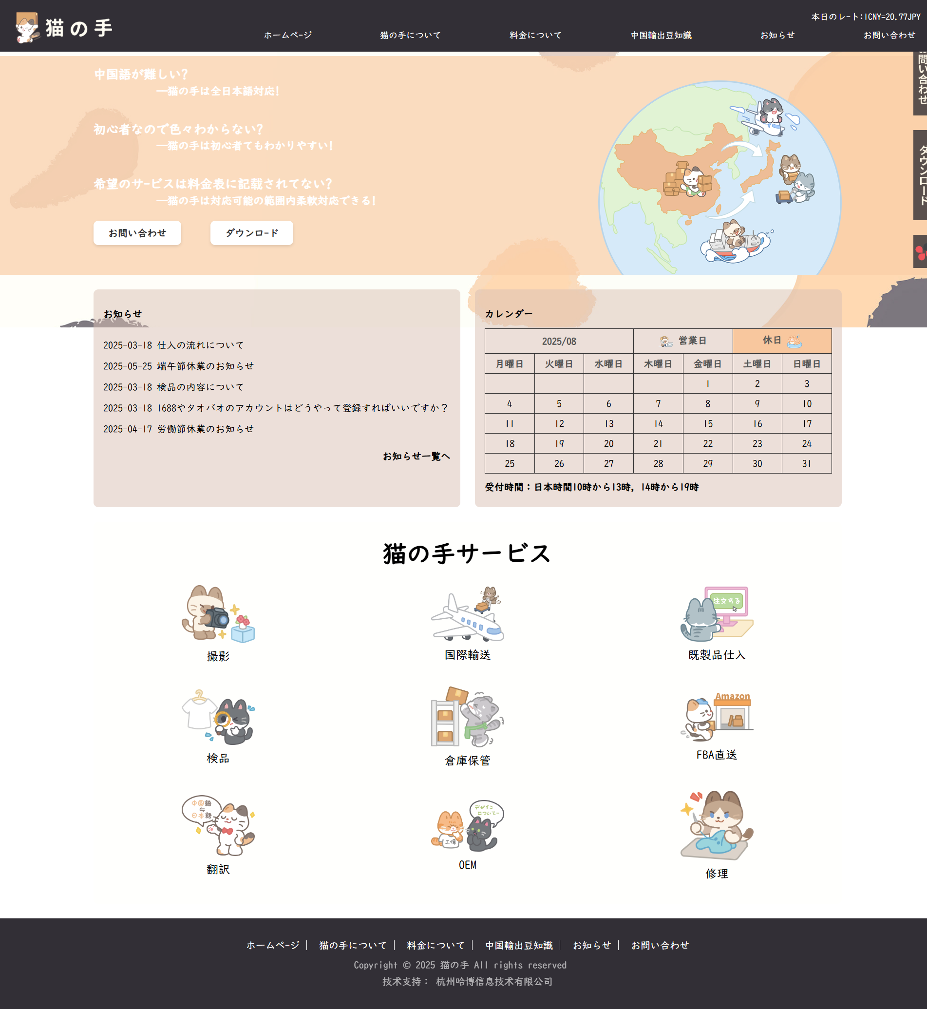 私たち「貓の手」は、中日間の電子商取引(eコマース)に特化した輸出代行會社です。